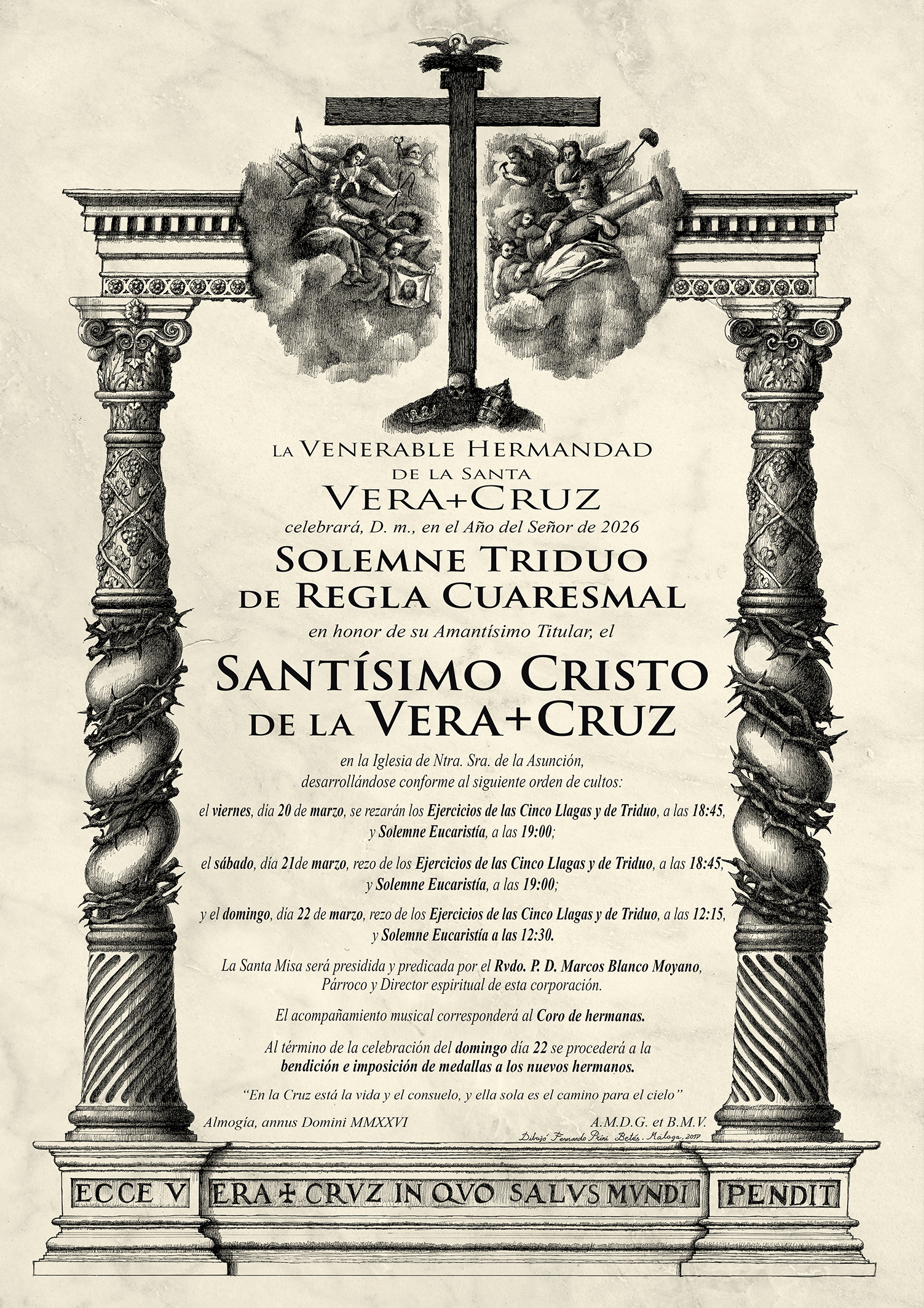 Cumpliendo con lo que establecen nuestros Estatutos, los próximos días 20, 21 y 22 de marzo de este año del Señor de 2026 esta Venerable Hermandad celebrará el Solemne Triduo de Regla Cuaresmal en honor al Santísimo Cristo de la Vera+Cruz.