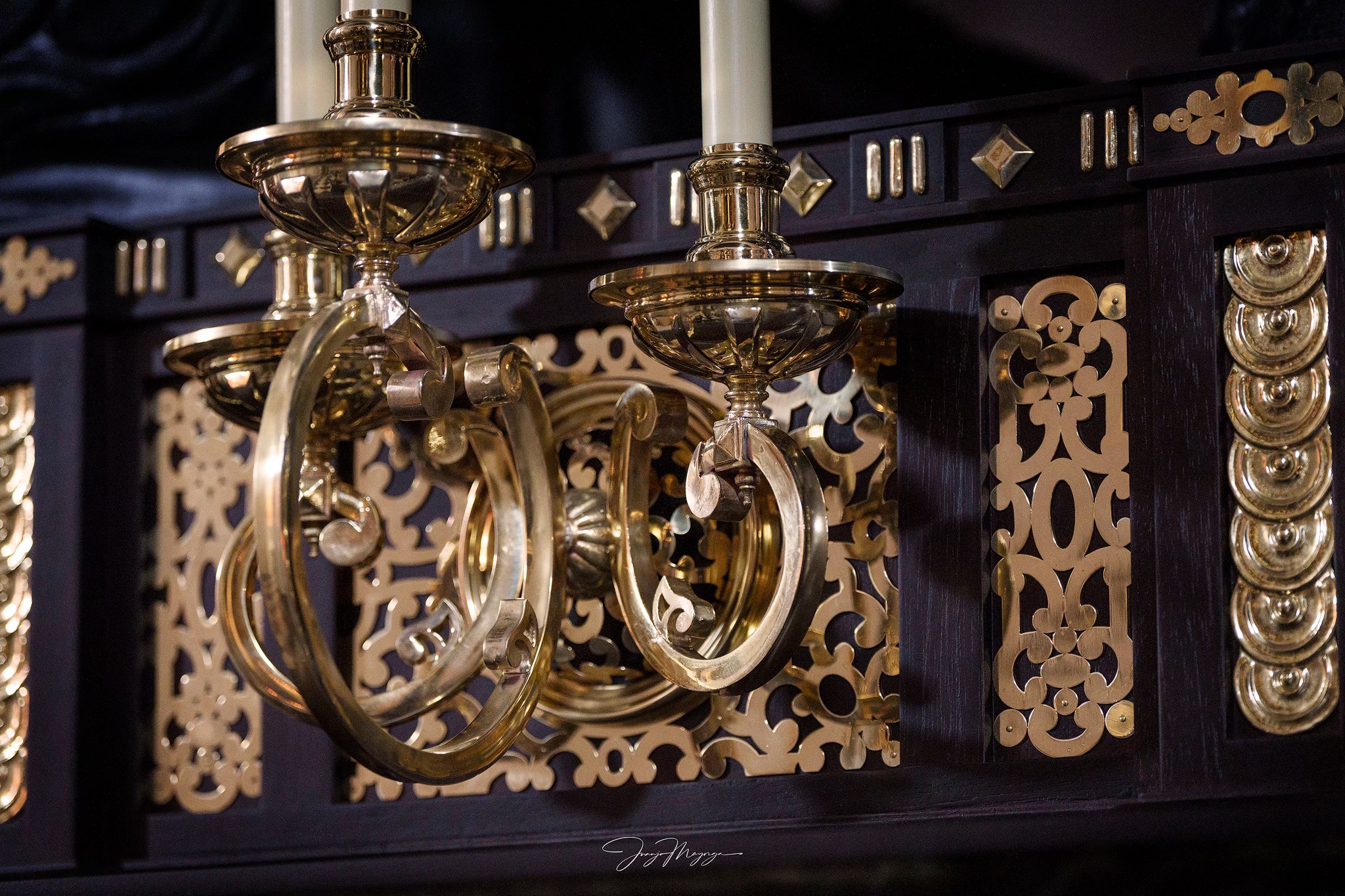 -El color oscuro de la madera aporta solemnidad y sobriedad al conjunto, la armonía de lo fúnebre. En contraposición el bronce dorado, que remite a uno de los presentes, aquel que manifestó la naturaleza regia del Señor.