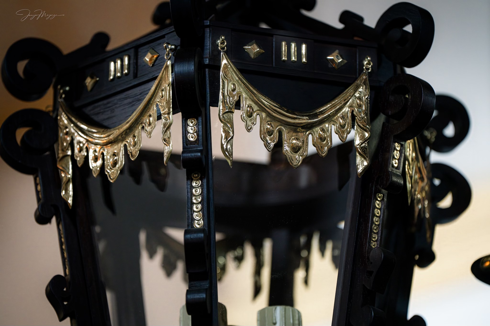 -Destacamos, en primer lugar, los cuatro faroles de las esquinas (uno de los elementos del conjunto histórico del Santo Entierro, que se recuperan), de sección hexagonal y rematados con obeliscos, símbolo de resurrección, elevación y trascendencia (y que se repiten en la urna).