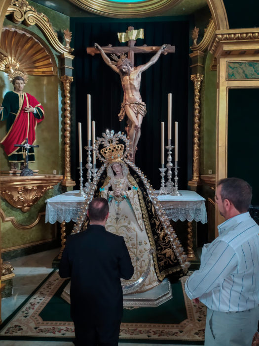 El Rvdo. P. D. Salvador Aguilera reza ante la Imagen del Santísimo Cristo
